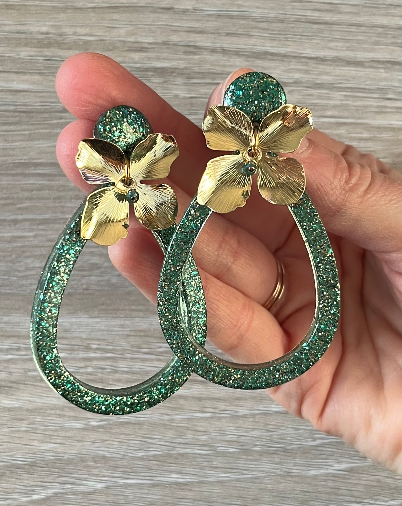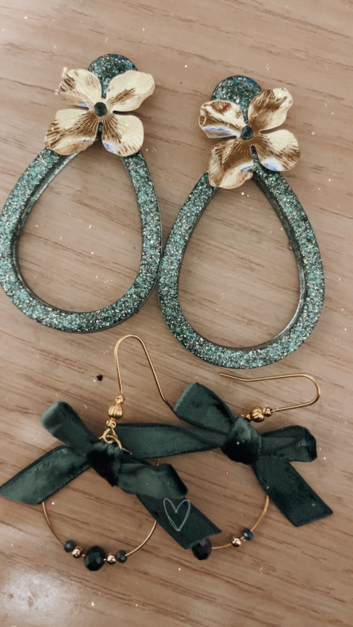 • d'une goutte à paillettes et d'une puce ronde assortie